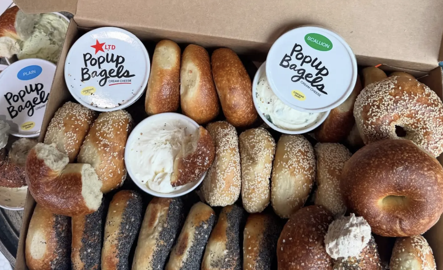 Known for their hot, whole bagels with a crispy crust and soft center, PopUp Bagels keeps it simple (and viral): no slicing, no sandwiches—just the signature “Grip, Rip & Dip” style with rotating schmears and butters.